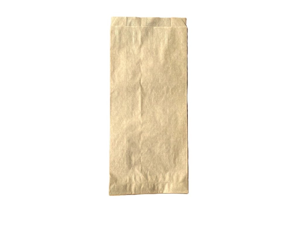 Sáčky jsou vyrobené z přírodního hnědého papíru typu sulfát, který má na sobě jemné proužky. Materiál působí ekologicky, je šetrný k životnímu prostředí a snadno se recykluje. Díky bočním záložkám mají sáčky větší kapacitu a lépe se přizpůsobí tvaru pečiva i dalších dobrot. Jemná hnědá barva podtrhuje přírodní vzhled, který ocení zákazníci upřednostňující udržitelné obaly.